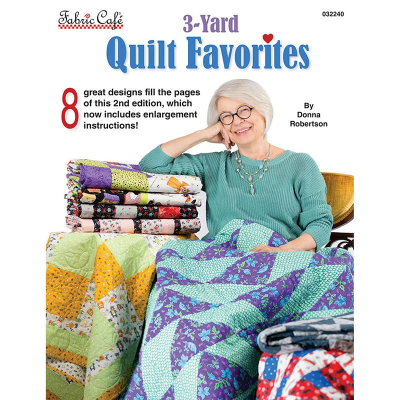 New and entirely revised second edition of the 3-Yard Quilt Favorites pattern book by Donna Robertson. These easy-to- follow along, quick-to-sew quilt patterns take the guesswork out of selecting fabric, helping quilters achieve stunning quilts fast. 3-Yard Quilt Favorites has 8 pretty designs updated to include enlargement instructions for all 3 sizes of lap, twin, and queen and king quilts. And if these aren’t enough for you, check out the other 3 yard quilt books from Donna Roberson.
