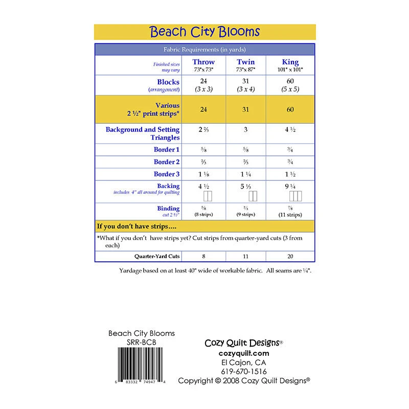 This quilt is giving us all the beach vibes! Beach City Blooms from Cozy Quilt Designs is a gorgeous quilt, made from one block twisted, turned, and set on point to create the dazzling layout you see here. This is a perfect pattern for Jelly Rolls, Bali Pops, strip bundles, or pieces from your own stash! Pattern includes instructions for throw, twin, and king sizes.