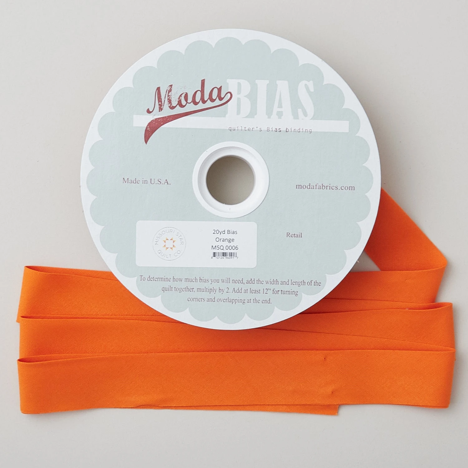20 yards of orange bias binding. Finish your quilts faster with premade bias binding! Together Missouri Star and Moda Fabrics have created a 20 yard spool of 100% cotton Moda Bella Solid fabric. Start a bias binding stash with these 2-1/4” single fold bias bindings.