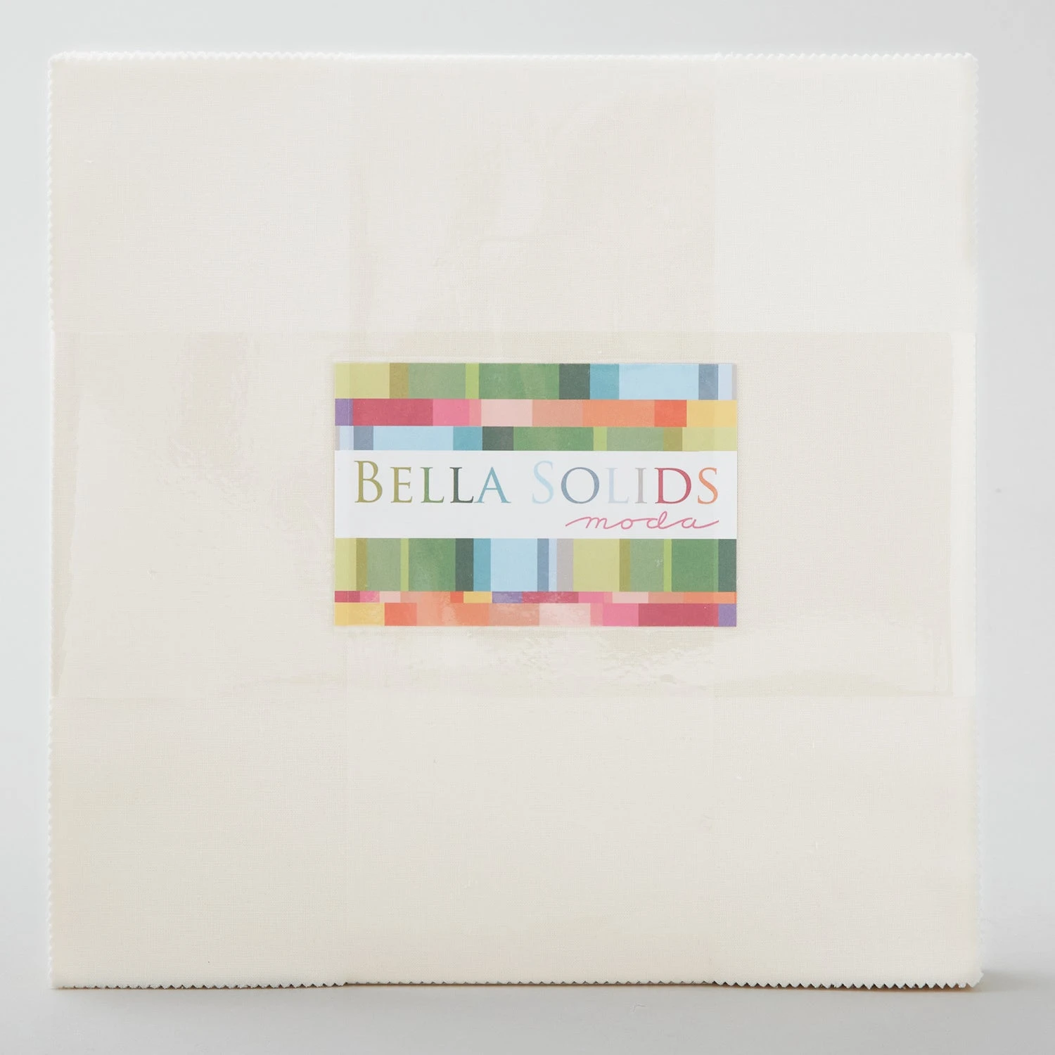 Layer cake of Bella solid ivory 10” squares. Solids are fantastic because of the balance they bring to quilts! If you need to balance out your project, consider Bella solids from Moda Fabrics! When it comes to Bella, you’ll always find the color you need, whether it’s sangria pink or lemon yellow.