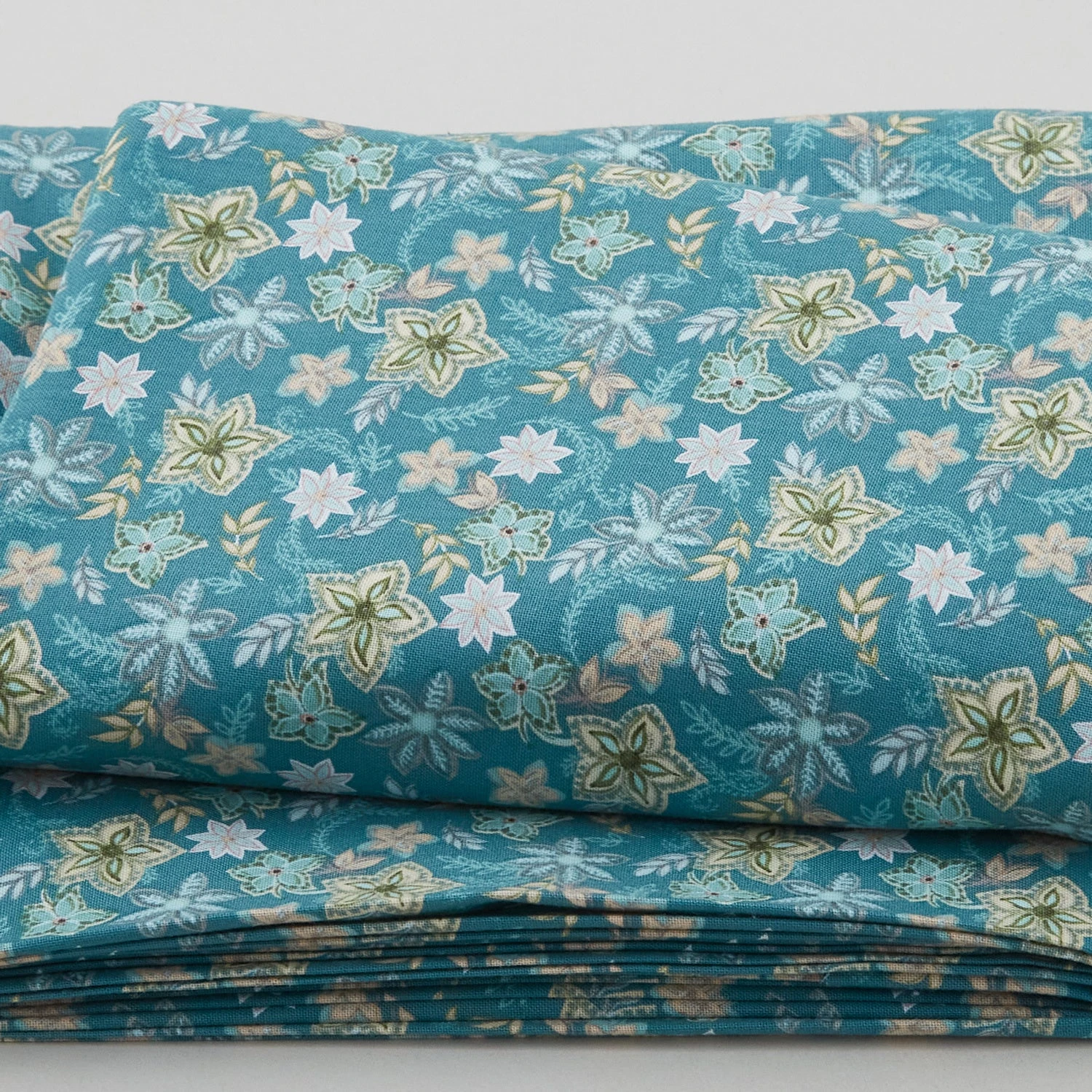 A 3-yard cut of aqua, cream, and other color flowers and leaves on a teal background. From the Blissful collection from Wilmington Prints.