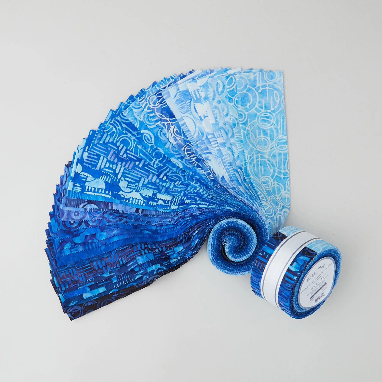 A 2.5″ strip pack of circles and bubbles in fun blues. A cute collection sure to blow you away! Artisan Batiks – Bubble Blues by Lunn Studios for Robert Kaufman is a beautiful fabric collection highlighting the coolest color in the rainbow. This collection features stunning circular shapes and lines, all in varying shades of blue. Don’t be blue- get these beautiful batiks to liven up your projects!