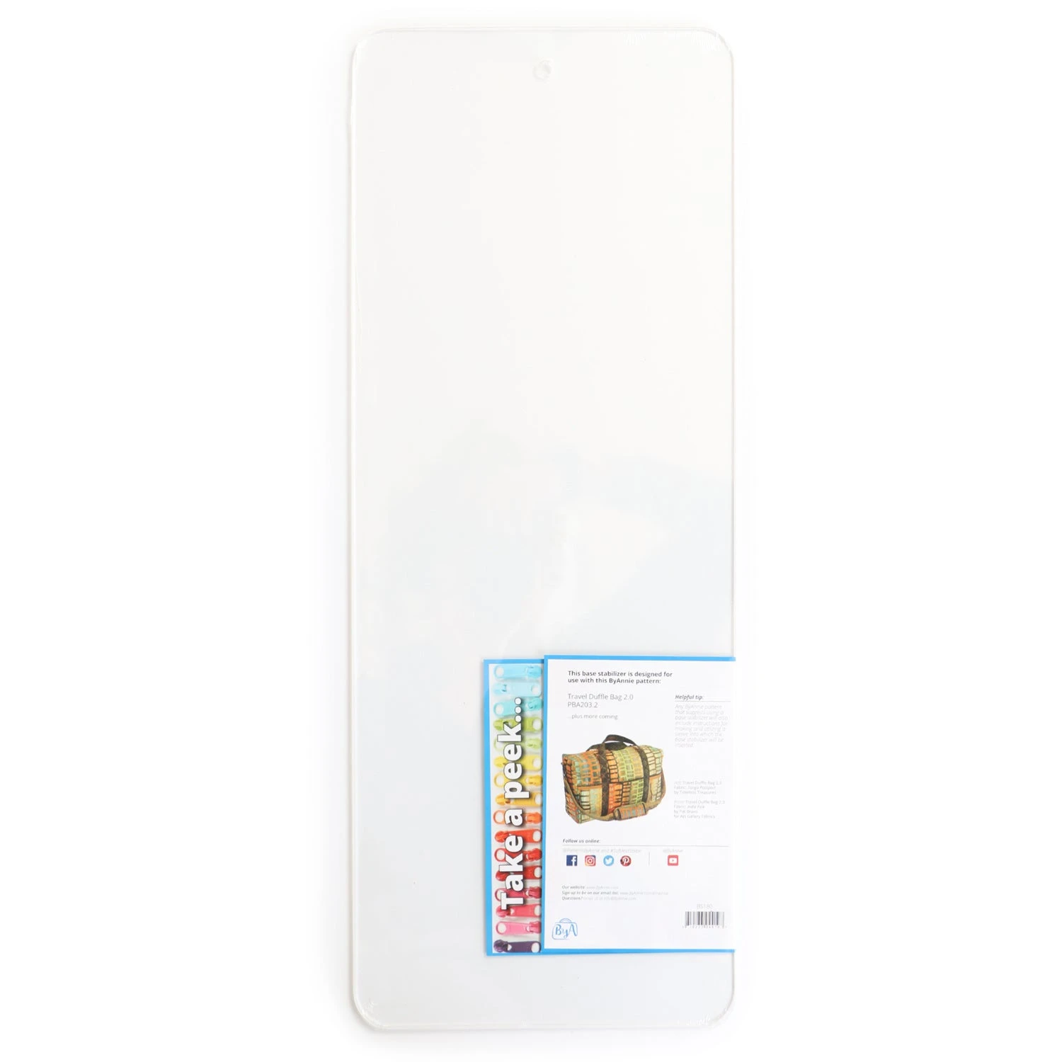 Give your handmade bag the stability it needs with ByAnnie Base Stabilizer. This clear, acrylic base stabilizer adds support to the bottom of a variety of bags, such as totes and duffle bags. This stabilizer is durable, lightweight, and features rounded corners. Note: this size fits the ByAnnie Travel Duffle Bag pattern!