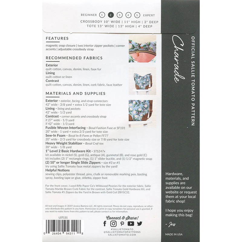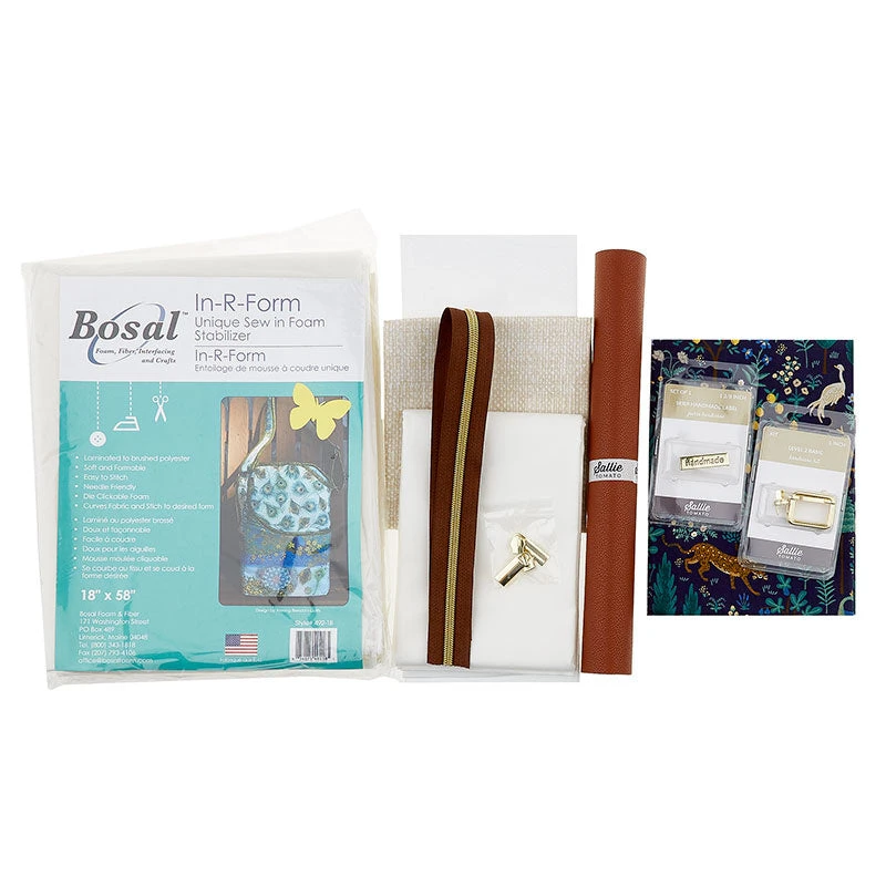 This cute customizable purse is the perfect bag for any occasion. Exclusive for Missouri Star, this Sallie Tomato kit has two sizes and is super cute! The kit contains the pattern, faux leather, fusible woven interfacing, sew-in foam, heavy stabilizer, the hardware for the purses and the fabrics for the outside and lining in a cute blue palate with flora and fauna.
