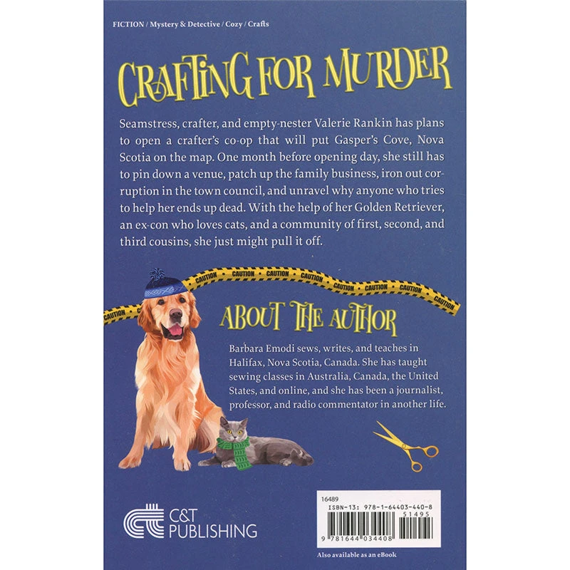 Seamstress, crafter, and empty-nester, Valerie Rankin, has plans to open a crafter’s co-op that will put the Nova Scotia town, Gasper’s Cove, on the map. However, one month before opening day, she still has to pin down a venue, patch up the family business, iron out corruption in the town council, and unravel why those who try to help her end up dead. With the help of her Golden Retriever, an ex-con who loves cats, and a community of cousins, she just might just pull it off.