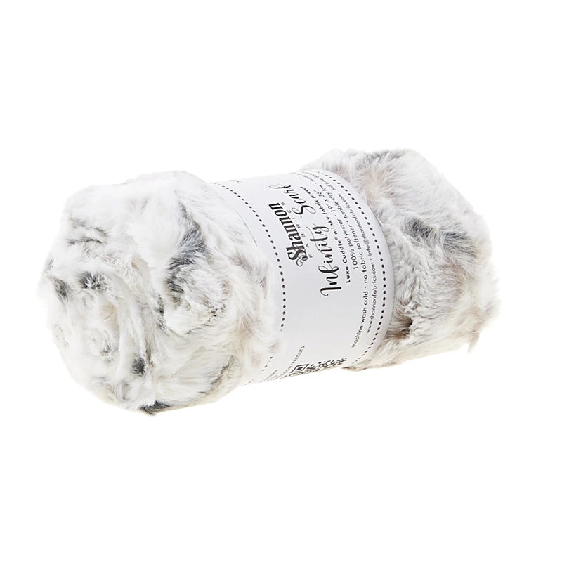 Light Grey Luxe Cuddle® infinity scarf kit. It’s perfect blend of ease and style! Perfect for beginner sewists and those looking for a quick make, this kit contains Luxe Cuddle® Snowy Owl Alloy fabric (19″ x 36″) and an easy-to-follow pattern. Makes a great gift for yourself or a friend!