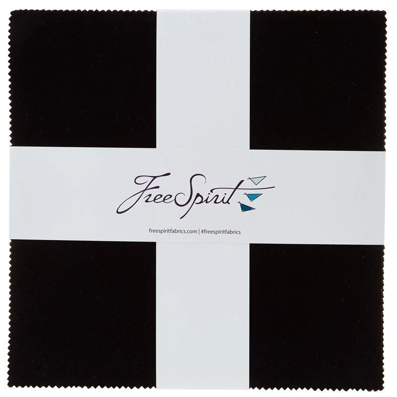 Layer cake of solid black 10″ squares. Get all the essential colors with Designer Essential Solids by Tula Pink from Free Spirit Fabrics! Tula Pink’s talent for color extends beyond her gorgeous print collections. Just take a look at these striking solids and see for yourself! These whimsical colors are perfect for any project.