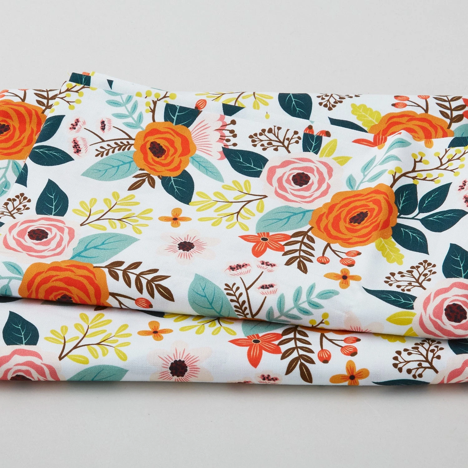A 2-yard cut of multicolored flowers on a white background. From animals to zigzags, the print you want is the Digital Designs collection from Blank Quilting Corp. These prints are clear and sharp, so your project will pop!