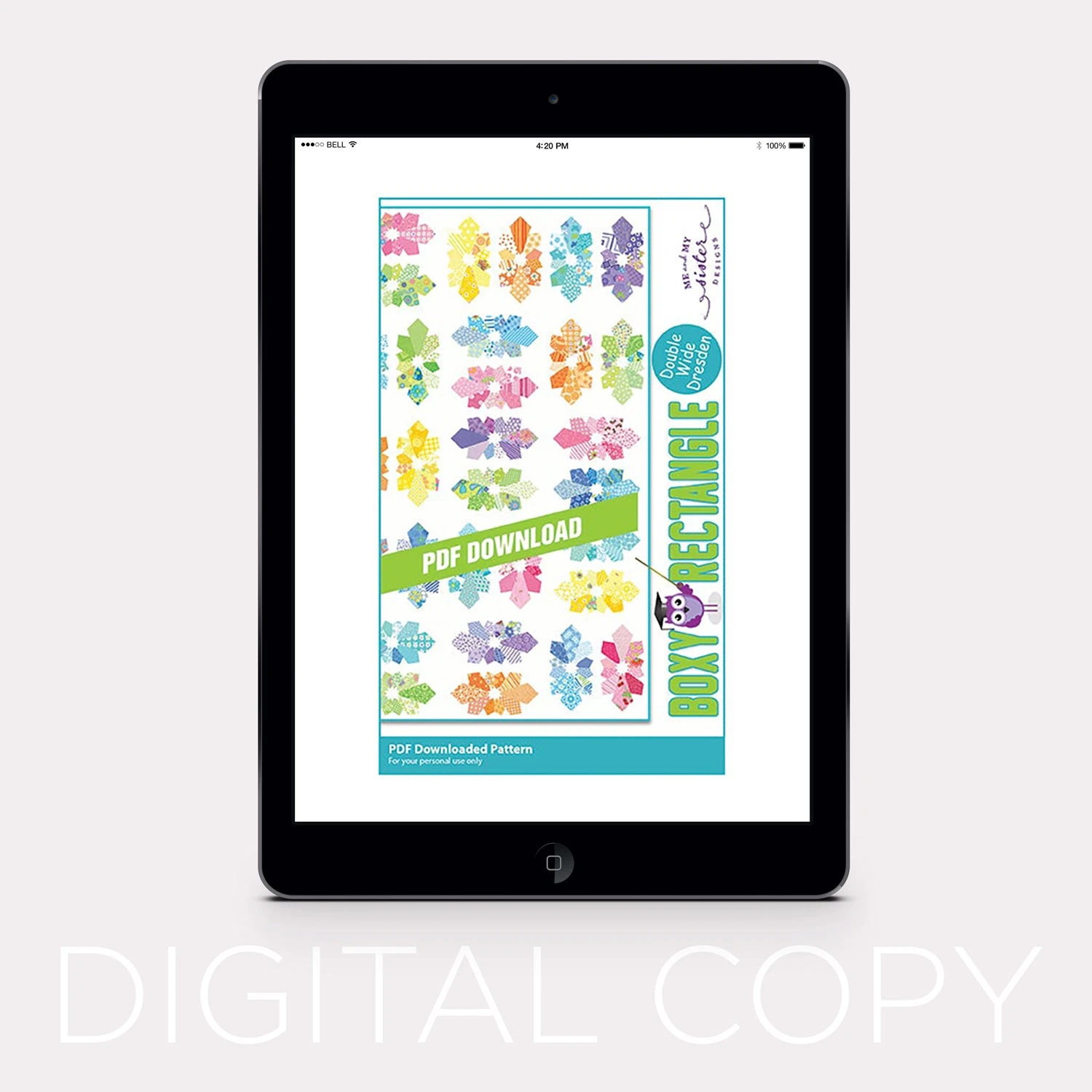 Make this unique Boxy Rectangle quilt using the Double Wide Dresden Ruler. The pattern, from Me and My Sister Designs, shows you a fast, fun, and easy way to make a modern Dresden with no hand applique in the center and no raw edges! Because of the double wide size, a secondary star pattern is created in the center. Construction requires the Double Wide Dresden Ruler.