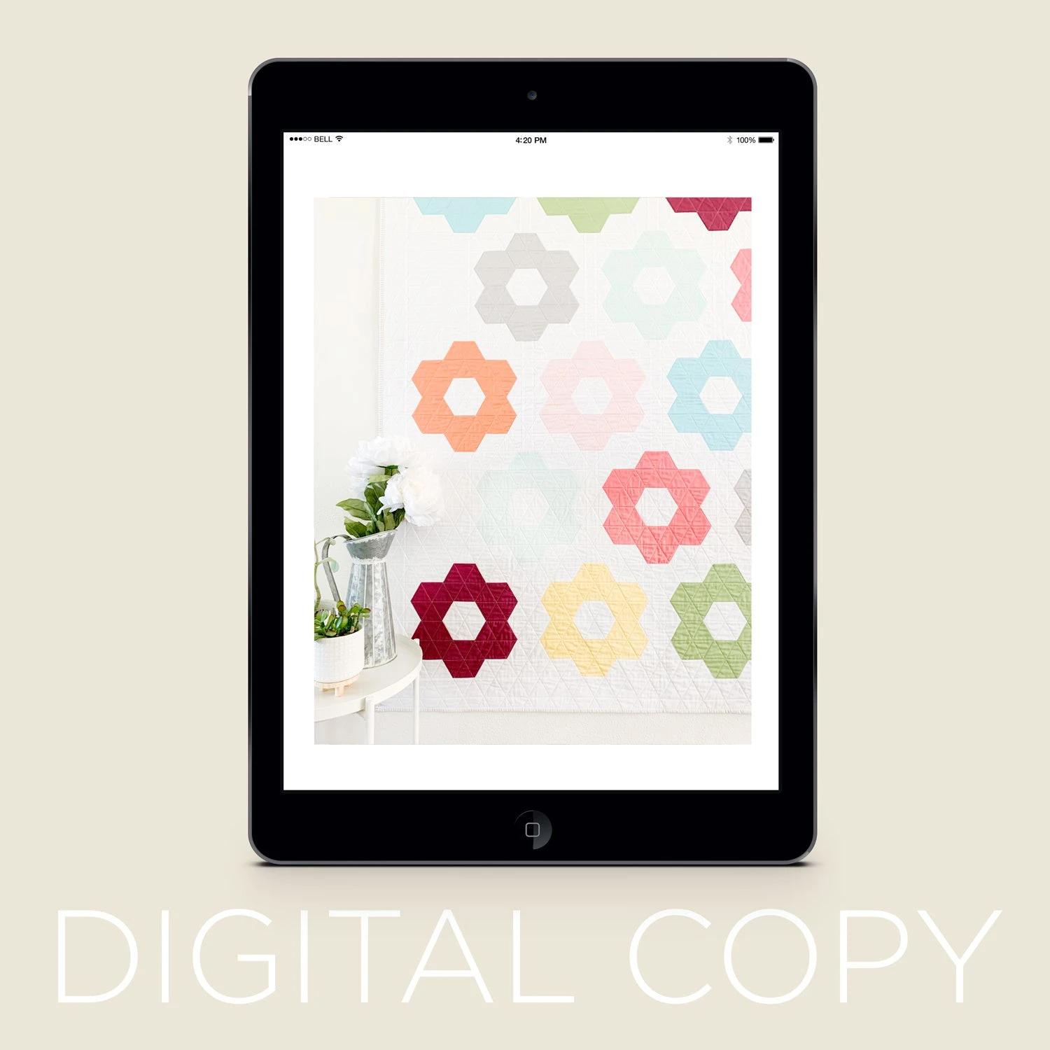Hexie Blooms from Cotton and Joy is a modern take on the classic Grandmother’s Flower Garden quilts. But this block-based pattern uses no y-seams and no hand sewing! It includes three design options using fat quarters, yardage, or scraps. Hexie Blooms is the perfect pattern for confident beginners comfortable with matching seams and those ready to give templates or specialty rulers a try. Pattern includes helpful diagrams, detailed instructions, and a Color-Your-Own page to help you decide your fabric choices.