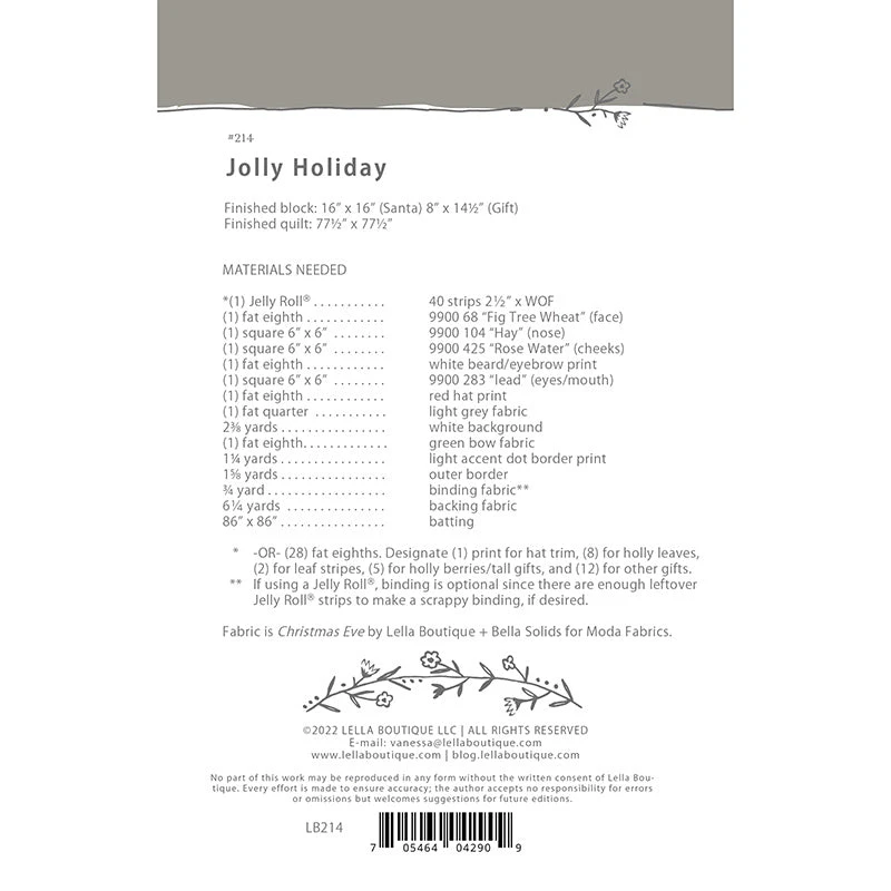 Have a holly jolly Christmas! The Jolly Holiday quilt from Lella Boutique is a Christmas medallion quilt design that consists of holly berries, presents, and a traditionally pieced Saint Nick, making it the perfect quilt for the holiday festivities!