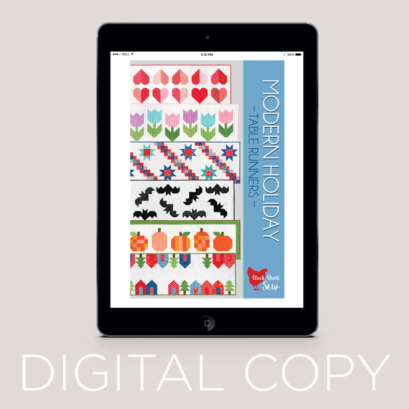 Sew 6 modern, adorable table runners to celebrate the holidays! All patterns use fat eighths, fat quarters, or large scraps, plus background yardage. This beautiful 24-page download includes easy-to-follow directions for each project.