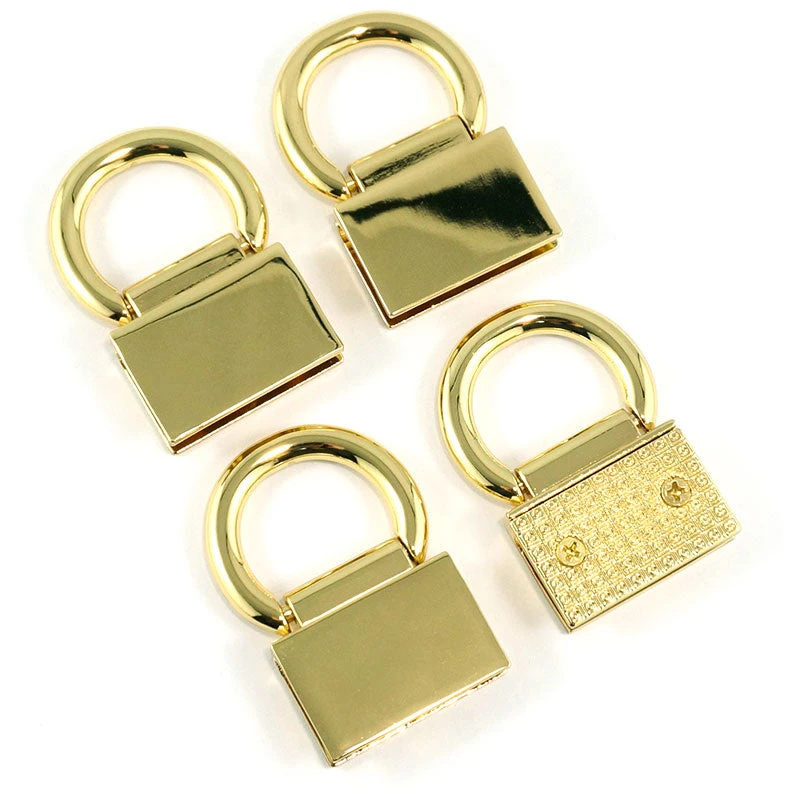 Achieve a professional-looking bag with these sleek strap connectors from Emmaline Bags! These gold anchors are easy to install and work with 3/4″ or 1″ straps and bag handles. Set includes four anchors.