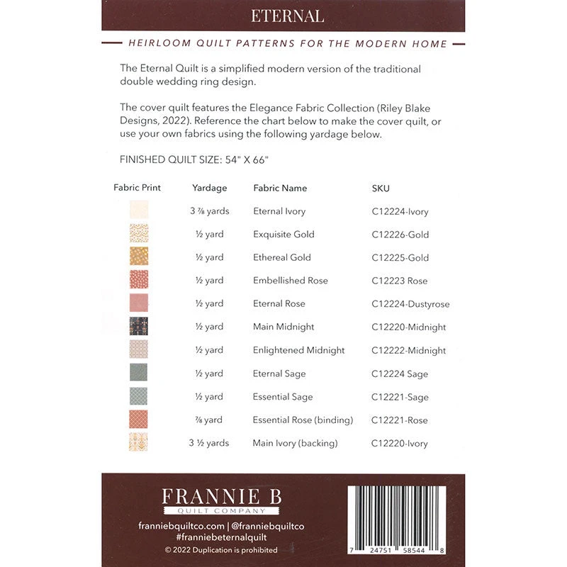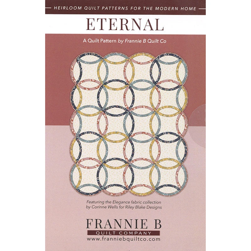 The Eternal Quilt is a straightforward double wedding ring quilt. Templates are included and instructions are simple. This is a perfect quilt for intermediate quilters.