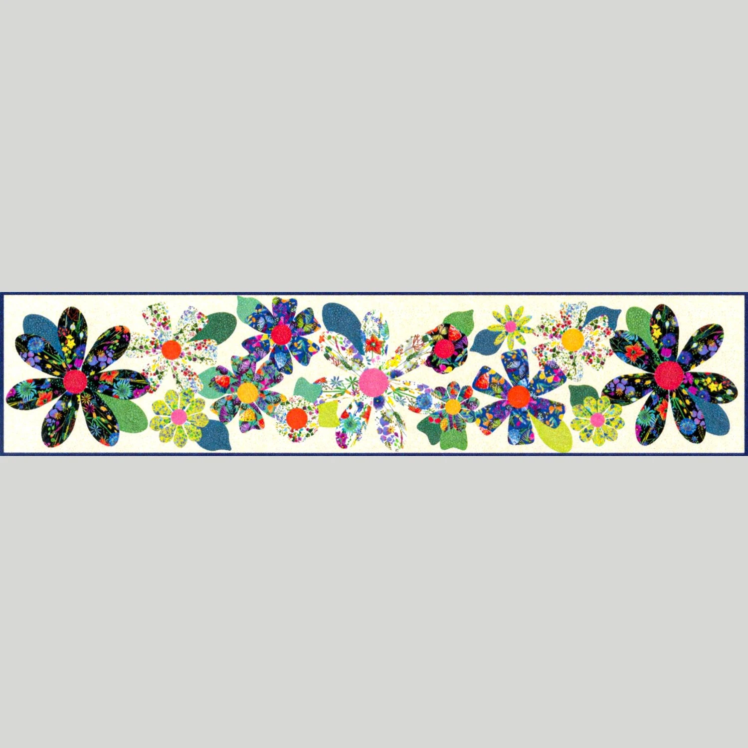 Embrace your inner flower child with some seriously sweet blooms! The Fleurs Table Runner Kit features vibrant applique flowers against a neutral background.