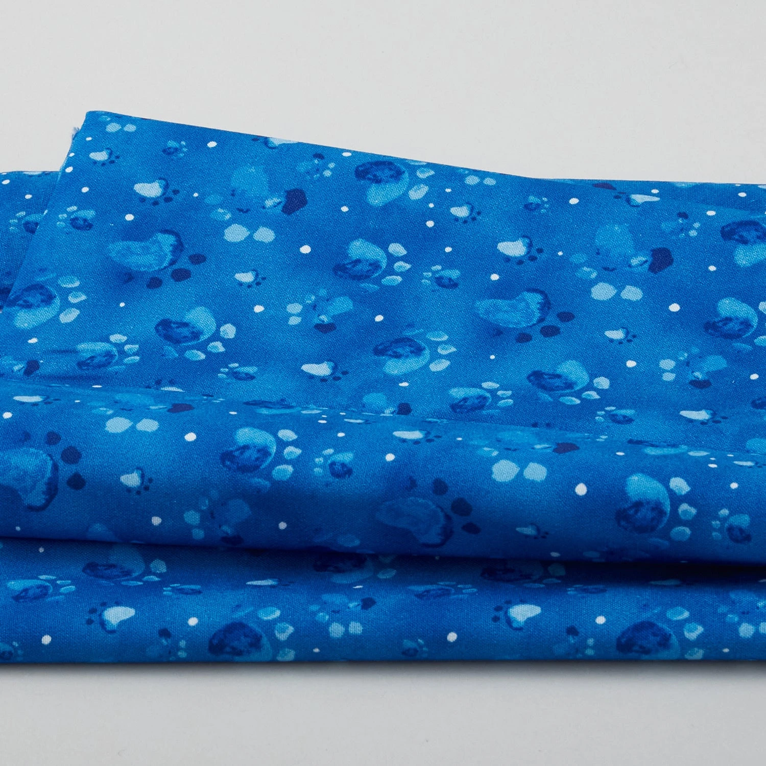 A 2-yard cut of blue and white paw prints and spots on a blue background. Variety is the spice of life, and these 2-yard cotton cuts from Fabric Editions offer plenty of it! Prints such as pink flamingos and scattered hearts add a fun touch to any project, and the solids are great staples for your stash.