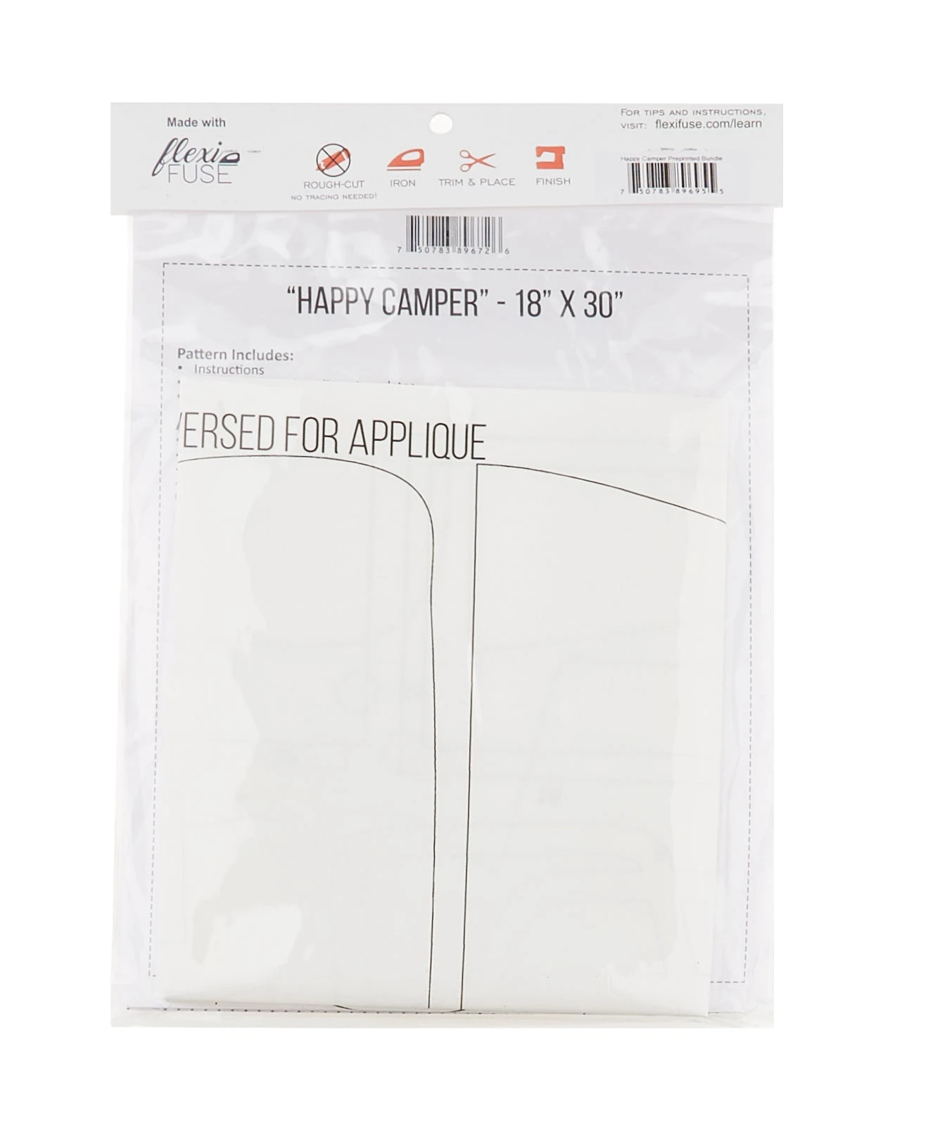 Calling all glampers! Express your love of glamorous camping with the Happy Camper fusible applique pattern from Ashley K Designs! The pattern, which includes preprinted FlexiFuse fusible appliques, means no tracing needed! Just iron on the appliques, trim, place, and then sew to finish the 18” x 30” project. You’ll be a happy camper in no time!