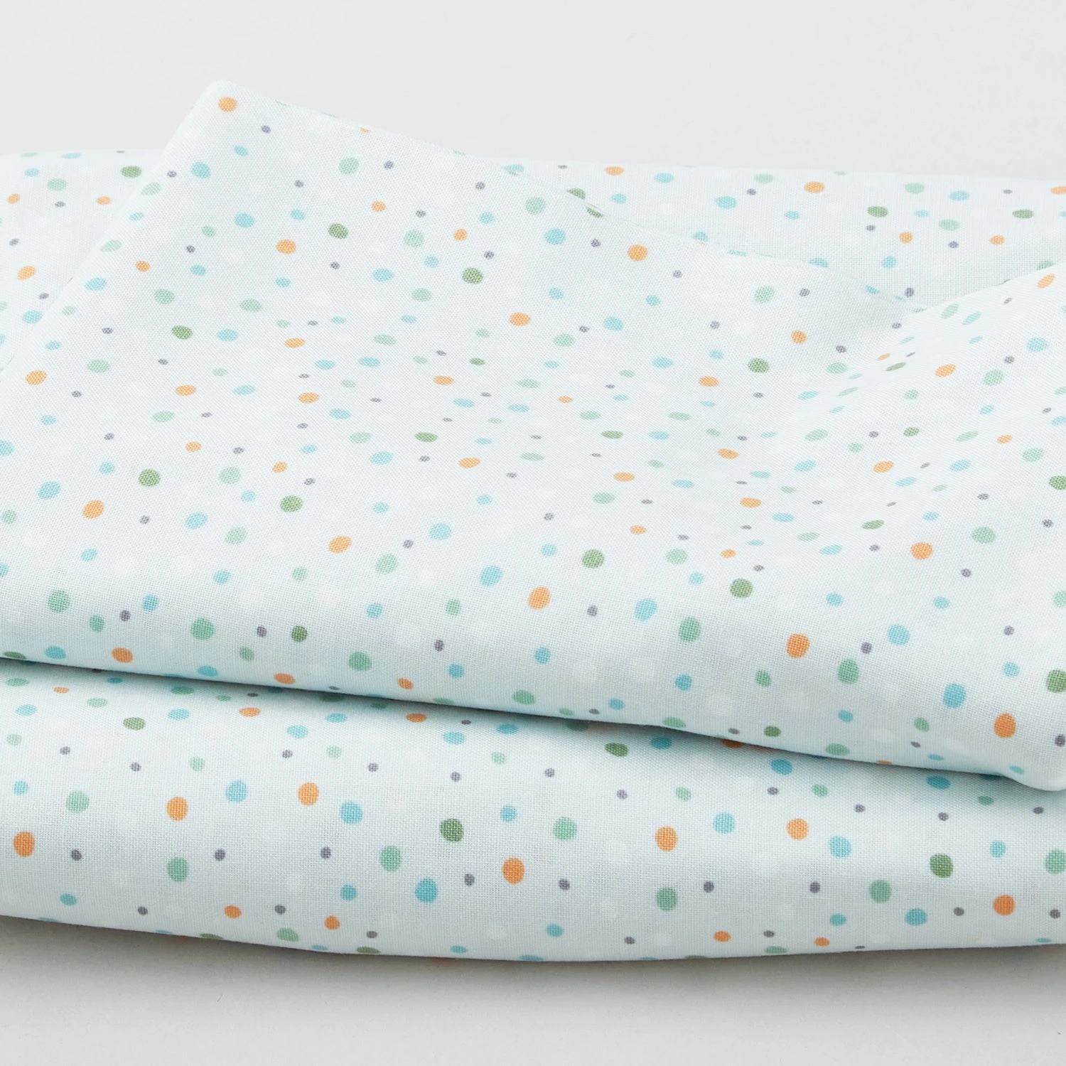 A 3-yard cut of colorful dots on a light green background. Elephants, giraffes, and zebras romp and play in Hello Sunbeam from Wilmington Prints. In a gray and yellow color palette, this collection of animals and coordinating prints would be perfect for baby quilts or nursery décor.