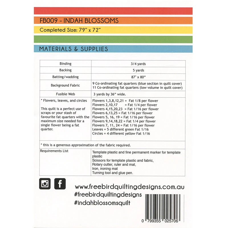 Patchwork meets applique in this stunning and bright lap quilt! The Indah Blossoms pattern by Carolyn Murfitt of Freebird Quilting Designs is fat-quarter friendly and is assembled in three sections, making it easier to sew on the appliqué pieces. Pull some contrasting fabrics to make this simple design really pop!