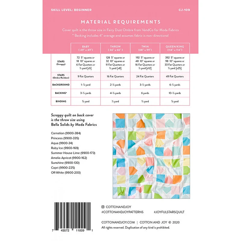 Joyful Stars is a fun and modern star quilt that works well with solids, prints, or scraps. No tricky piecing makes this a great beginner quilt pattern. Pattern includes easy-to-follow instructions.
