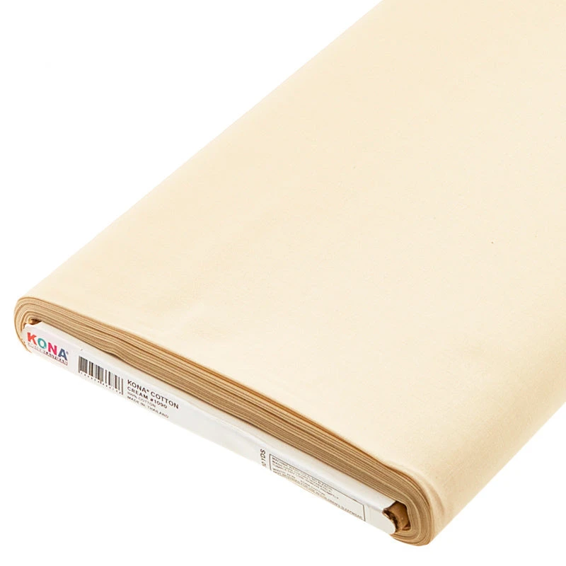 Get your basics by the bolt with this 10 yard bolt of Kona Cotton cream fabric! Load up on your essentials in bulk with our selection of whole-bolt cuts. Quilt with a rainbow of colors! Kona Cotton fabric by Robert Kaufman has the largest range of quilting solids available with an astounding 366 colors in their collection. Kona is a quilter’s favorite for a reason: from its vast array of hues to its thicker weave, it’s the perfect fabric for patchwork, adding needed structure to your projects while being a delight to sew! Sew confidently with Kona, a certified “Standard 100” safe fabric by Oeko-Tex. These gorgeous solids are always in style and complement any project.