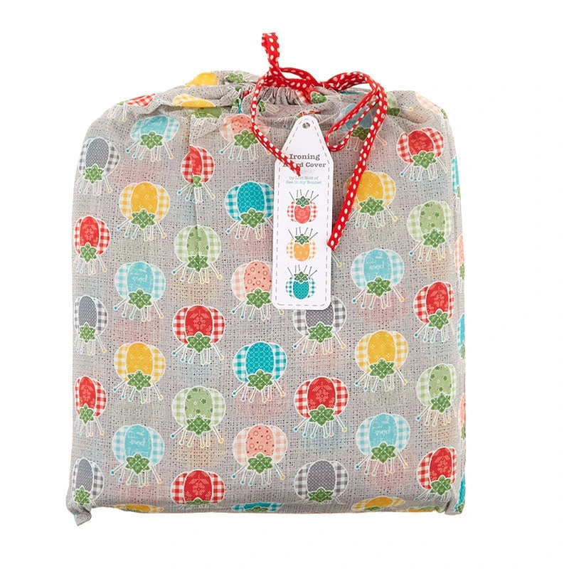 The My Happy Place Ironing Board Cover by Lori Holt of Bee in My Bonnet is perfect for any sewing room, laundry, or ironing station! Featuring colorful tomato pin cushions on a gray background, and made of 100% cotton with plush batting in between with foam, this cover also comes with a matching drawstring bag and fits a standard ironing board.