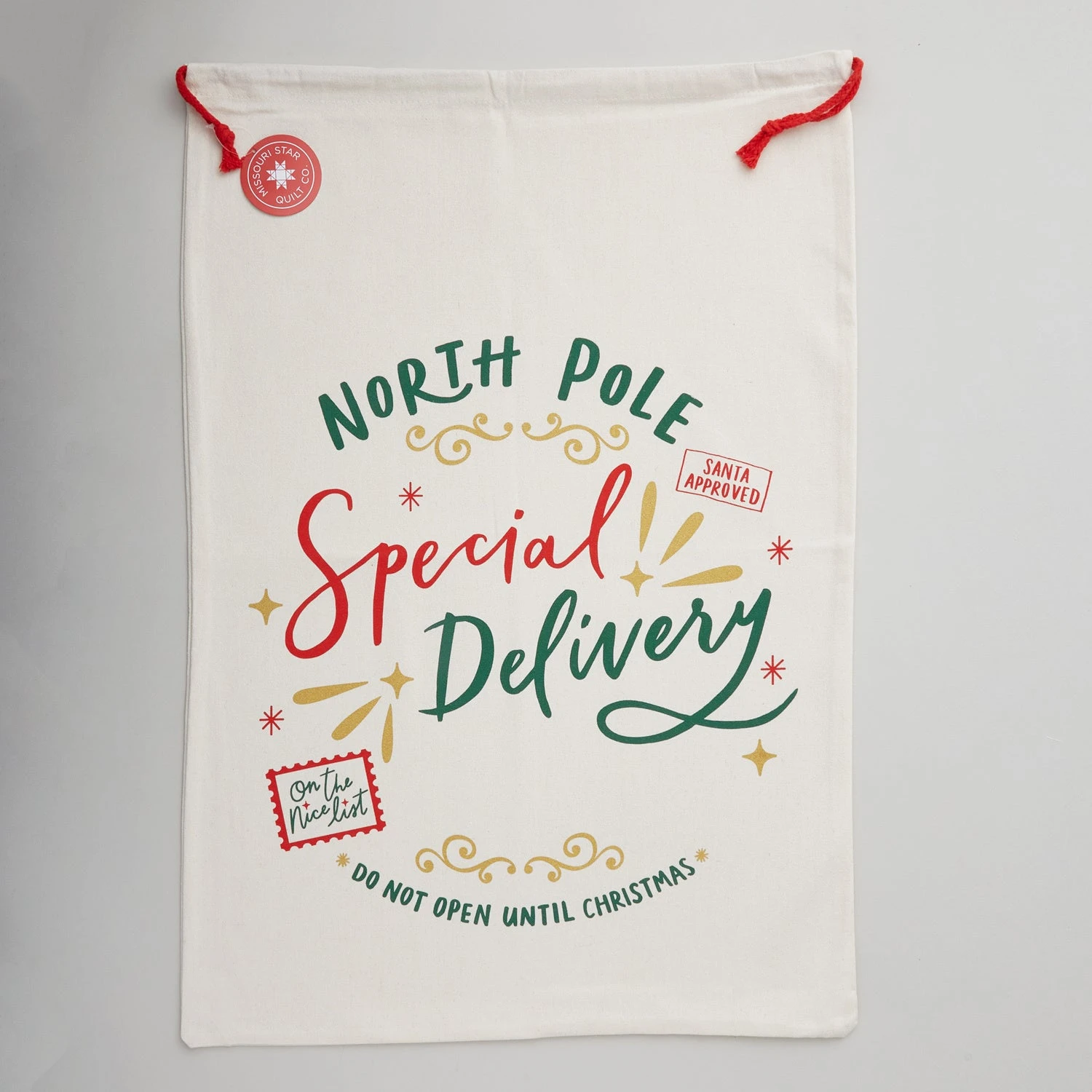 There is so much you can do with this adorable Missouri Star Santa Sack! Made of cotton canvas with a red drawstring, this sack features red, green, and gold foil print and works perfectly with our alphabet iron-ons. Decorate this canvas sack with some fun embellishments or use it as a gift bag for Christmas!