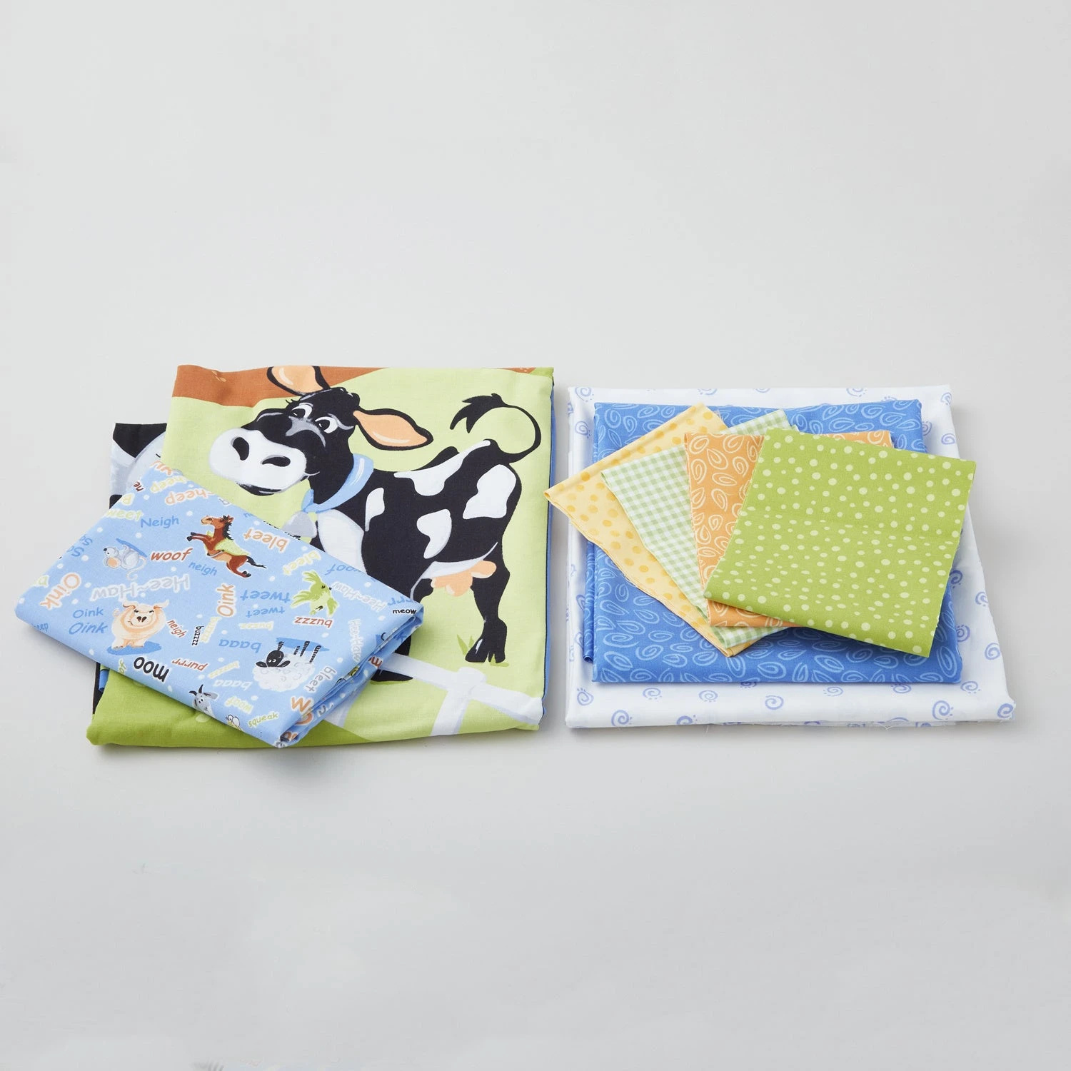 So farm, so good! The Moo Crew Quilt Kit features friendly farm animals like horses, sheep, pigs, and more. Designed by Wendy Sheppard, this pieced quilt kit includes a pattern and Susybee Barnyard Blues fabrics for Clothworks for the top and binding. An additional 3 yards of backing fabric is required; we recommend Barnyard Blues – Farm Animal Noises Denim. This adorable quilt is perfect for a farm-themed nursery!