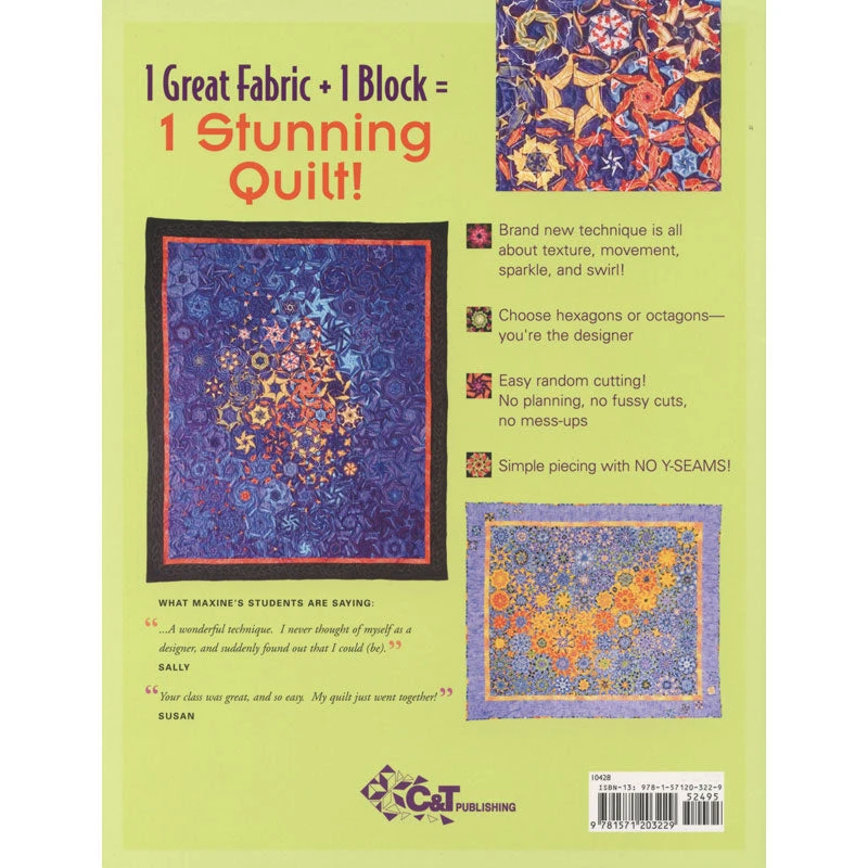 Amaze your friends! Maxine Rosenthal shows you exactly how to choose a large-scale print, figure yardage, cut and piece these drop-dead gorgeous quilts. Big pieces and clever short-cut methods make these quilts go together faster than you’d think. Simple piecing with NO Y-SEAMS!