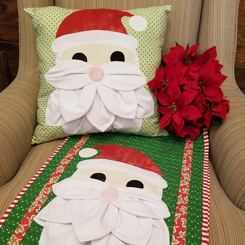 The Petal Pop Santa pattern includes instructions easy-to-follow instructions for both a pillow and table runner, plus a paper petal template. Acrylic petal template available separately.