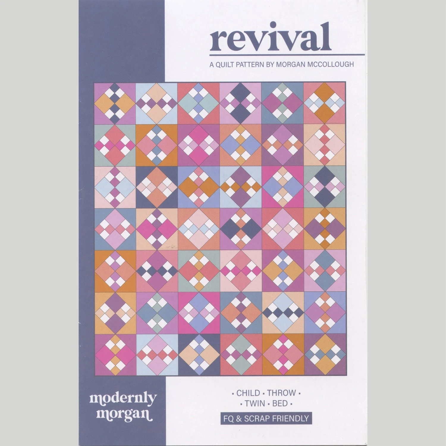 Create a quilt with timeless beauty! The Revival pattern by Morgan McCollough has piecing instructions for a classic four-patch quilt. The fat-quarter and scrap-friendly quilt can be made in four sizes.