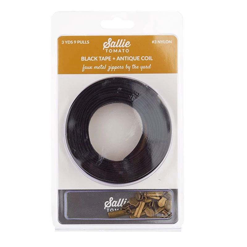 You’ll have zippers for days with this 3-yard roll of Sallie Tomato #3 Nylon Zipper Tape! The black tape has a 3mm-wide antique coil and includes nine matching metal pulls with an antique finish. Easily cut and sew through the nylon coil to create the length you need. Make single or double slide zippers!