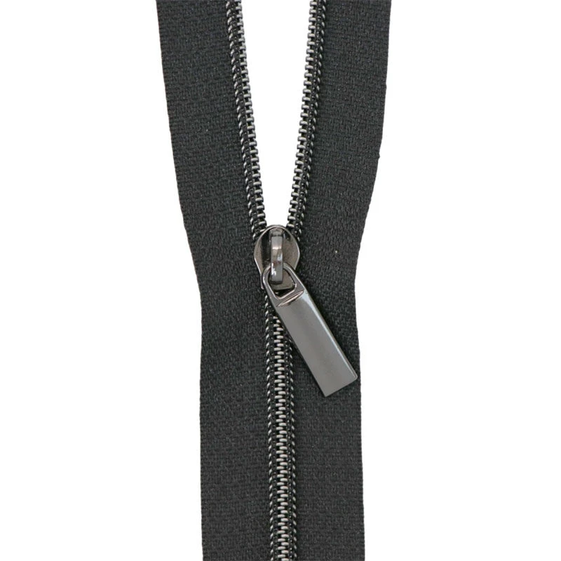 You’ll have zippers for days with this 3-yard roll of Sallie Tomato #3 Nylon Zipper Tape! The black tape has a 3mm-wide gunmetal coil and includes nine matching metal pulls with a gunmetal finish. Easily cut and sew through the nylon coil to create the length you need. Make single or double slide zippers!