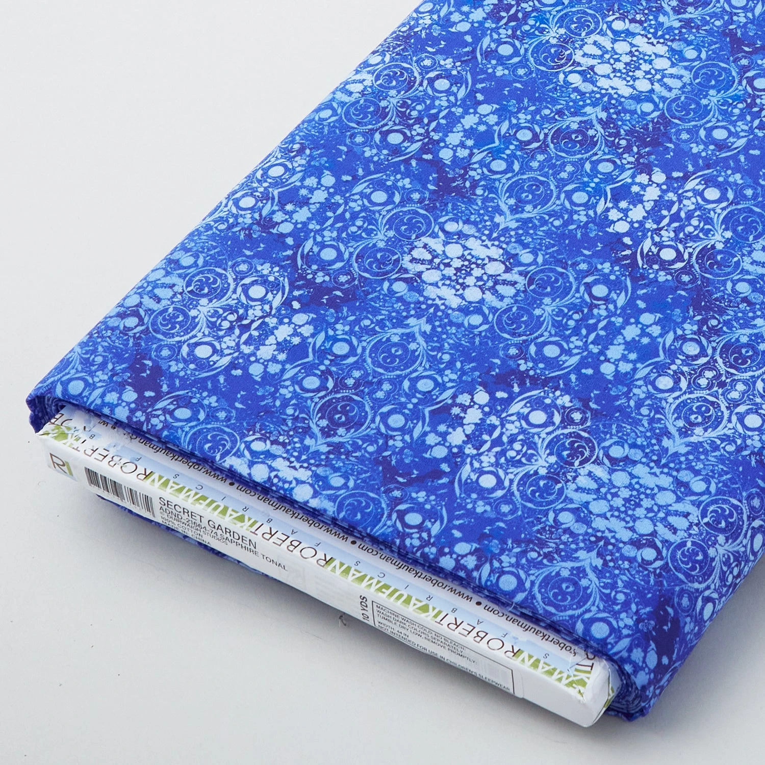 A 10-yard bolt of tonal sapphire filigree. Don’t flutter by this collection! Secret Garden from Robert Kaufman Fabrics is filled with butterflies and beautiful coordinating prints. You butter fly to your sewing machine and start sewing a quilt!