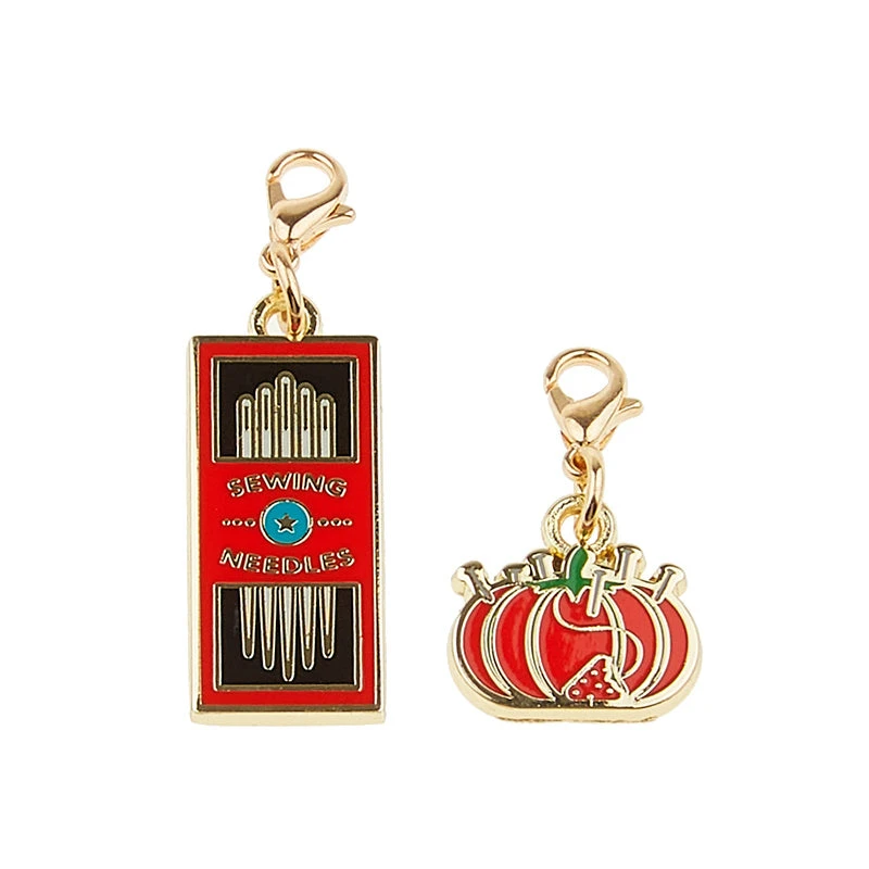 Add style to your zipper pulls with these cute enamel mini pulls with lobster claw clips. This pack includes a needle and a pincushion zipper pull.