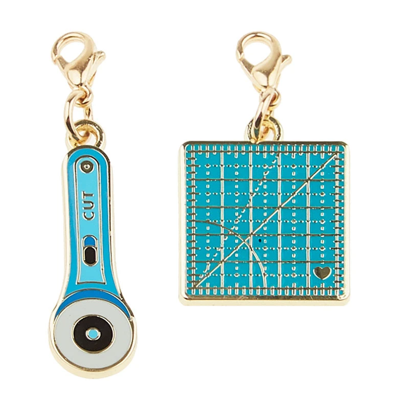 Add style to your zipper pulls with these cute enamel mini pulls with lobster claw clips. This pack includes a rotary cutter and a sewing mat zipper pull.