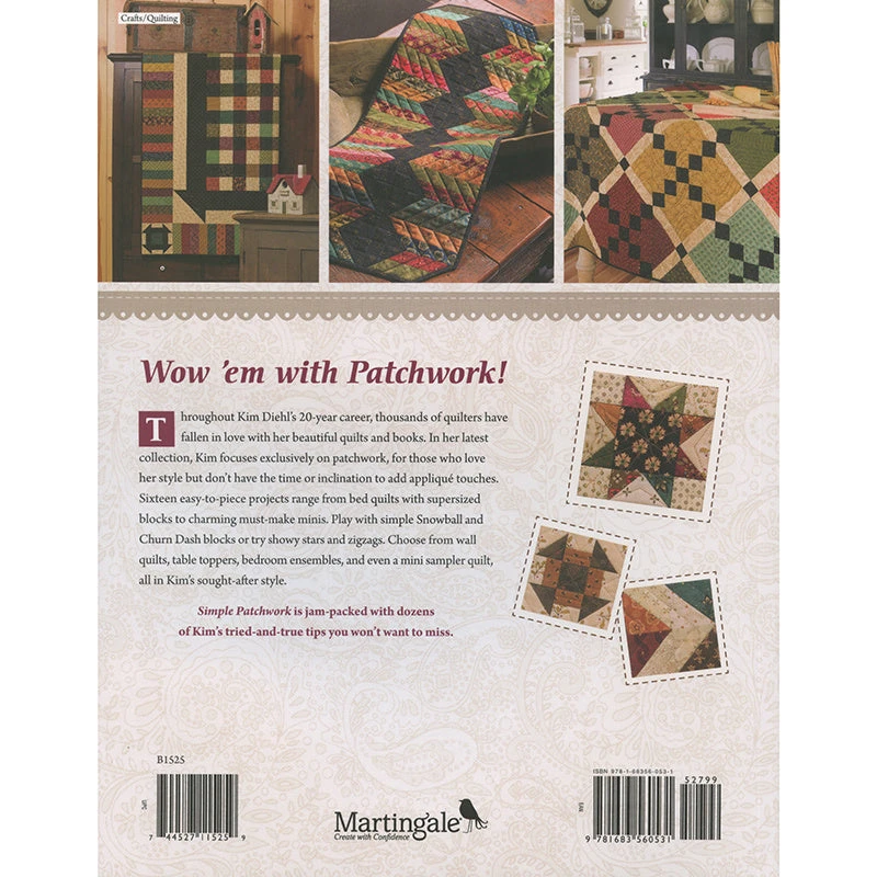 Throughout Kim Diehl’s 20-year career, thousands and thousands of quilters have fallen in love with her beautiful quilts and books. In this latest collection, Kim focuses exclusively on patchwork. Included are 16 easy-to-piece projects that range from bed quilts with supersized blocks to charming must-make minis. Choose from wall quilts, table toppers, bedroom ensembles, and even a mini sampler quilt, all in Kim’s sought-after style.