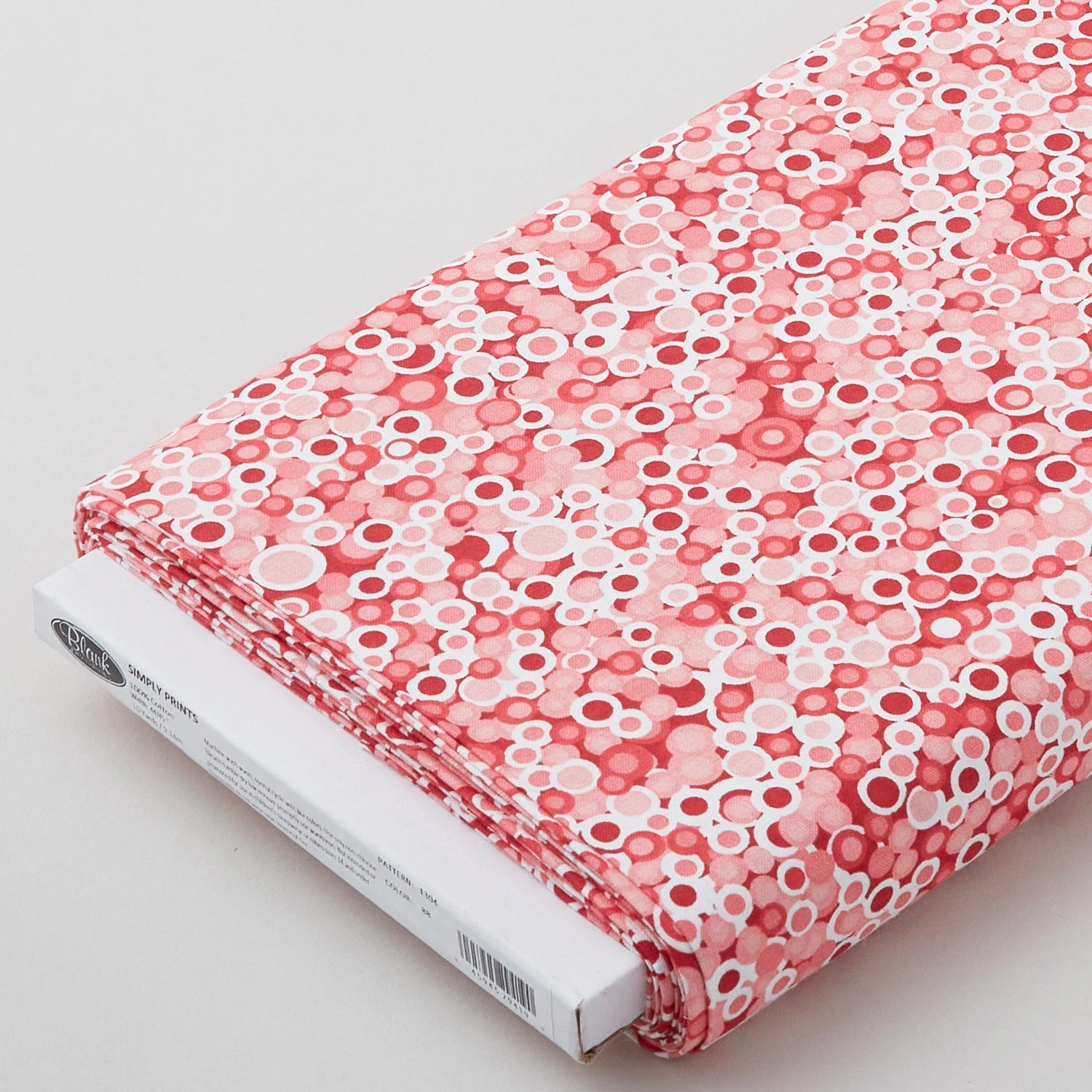 A 10-yard bolt of red and white circles packed on a red background. Whether you’re looking for ditsy daisies or magnificent mosaics, you’ll find them by the bolt in the Simply Prints collection from Blank Quilting Corp. These bolts of prints, which come in a wide array of colors, are perfect for pieced backings on large quilts.