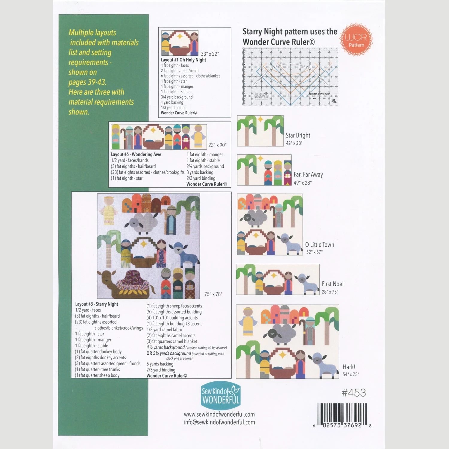 A modern nativity quilt made with the help of the Wonder Curve Ruler. This pattern by Sew Kind of Wonderful includes piecing directions using the Wonder Curve Ruler. The pattern has 15 blocks and 8 layouts.