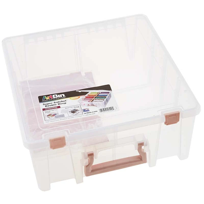 The extra depth in this storage container is great for larger notion storage, folded fat quarters or charm squares. Has an open core with removable compartments; 8 total. Has a handle and latch closures. So pretty in rose gold too!