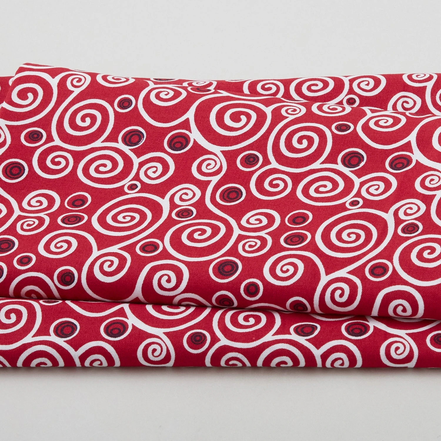 A 2-yard cut of large white swirls with tiny, dark blue swirls on a red background. Sweet stars! Have you seen the Sweet Liberty collection? From Blank Quilting Corporation, this charming Fourth of July/patriotic collection is full of fun and classic red, white, and blue themes, from stars to stripes.