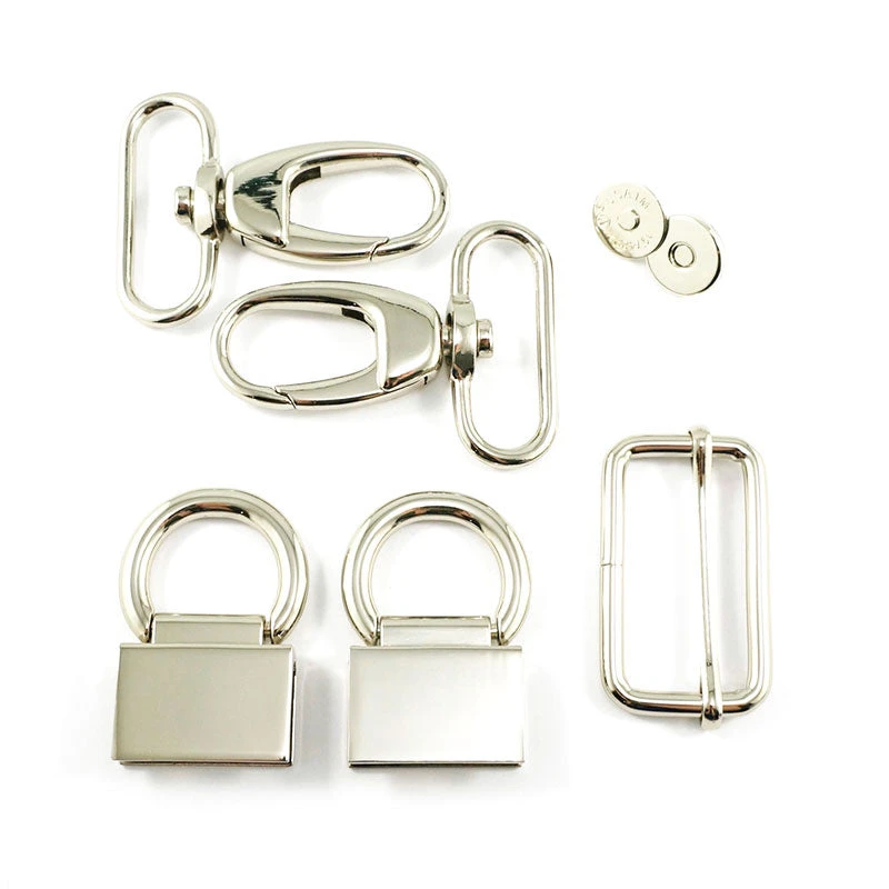 Got your eye on the Double Flip Bag Pattern from Emmaline Bags? This kit includes all the hardware you need to make that fabulous bag! From this kit, you receive one 9/26″ slim magnetic snap, two 1 1/2″ swivel snap hooks, one 1 1/2″ adjustable strap slider, and two edge connectors — all in a nickel finish.