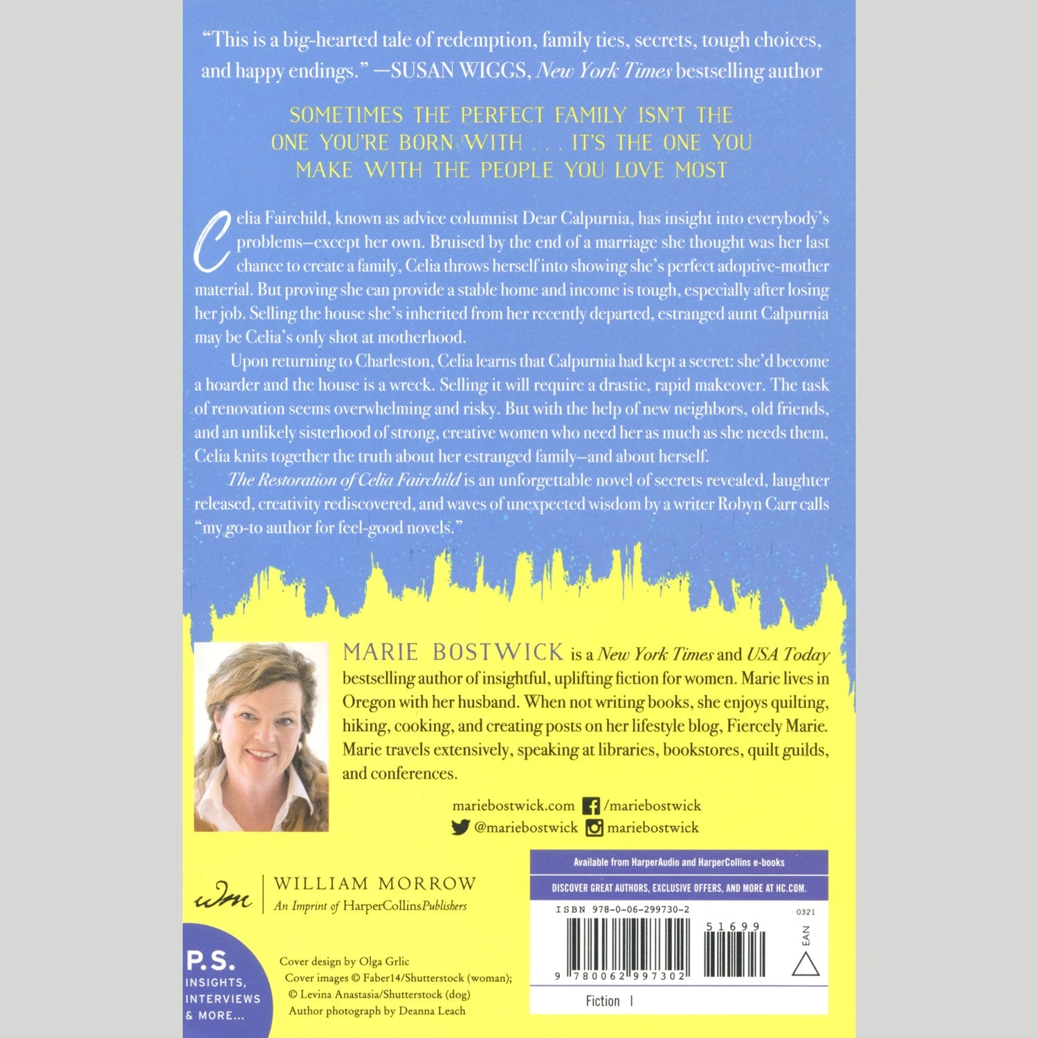 From New York Times and USA Today bestselling author Marie Bostwick: Advice columnist Celia Fairchild has insight into everybody’s problems—except her own. Bruised by the end of a marriage she thought was her last chance to create a family, Celia receives an unexpected chance to adopt. To gain financial stability,  she must sell the Charleston house left to her by her recently departed aunt. The house is a wreck, and renovating it seems overwhelming and risky. With the help of new neighbors, old friends, and an unlikely sisterhood of strong, creative women, Celia discovers the truth about her family and herself.