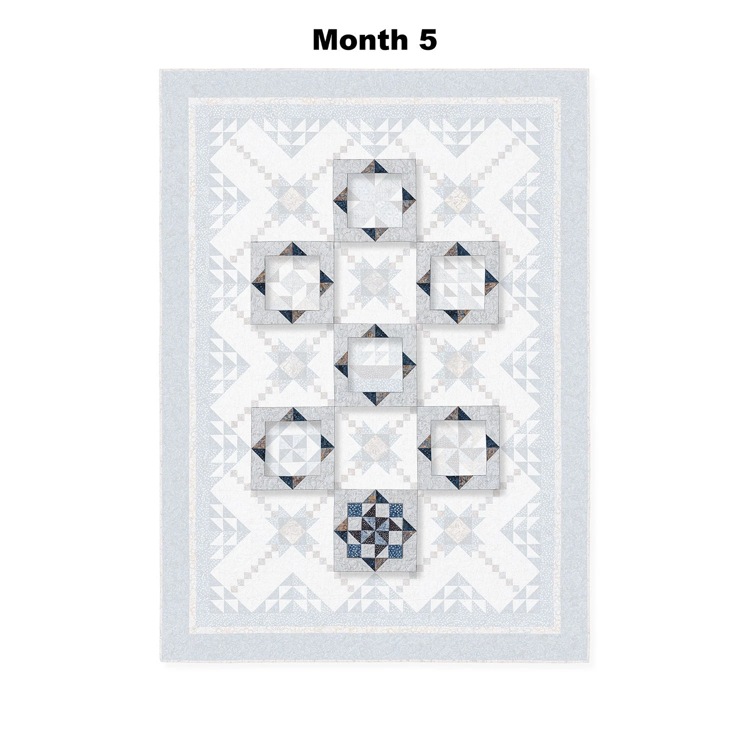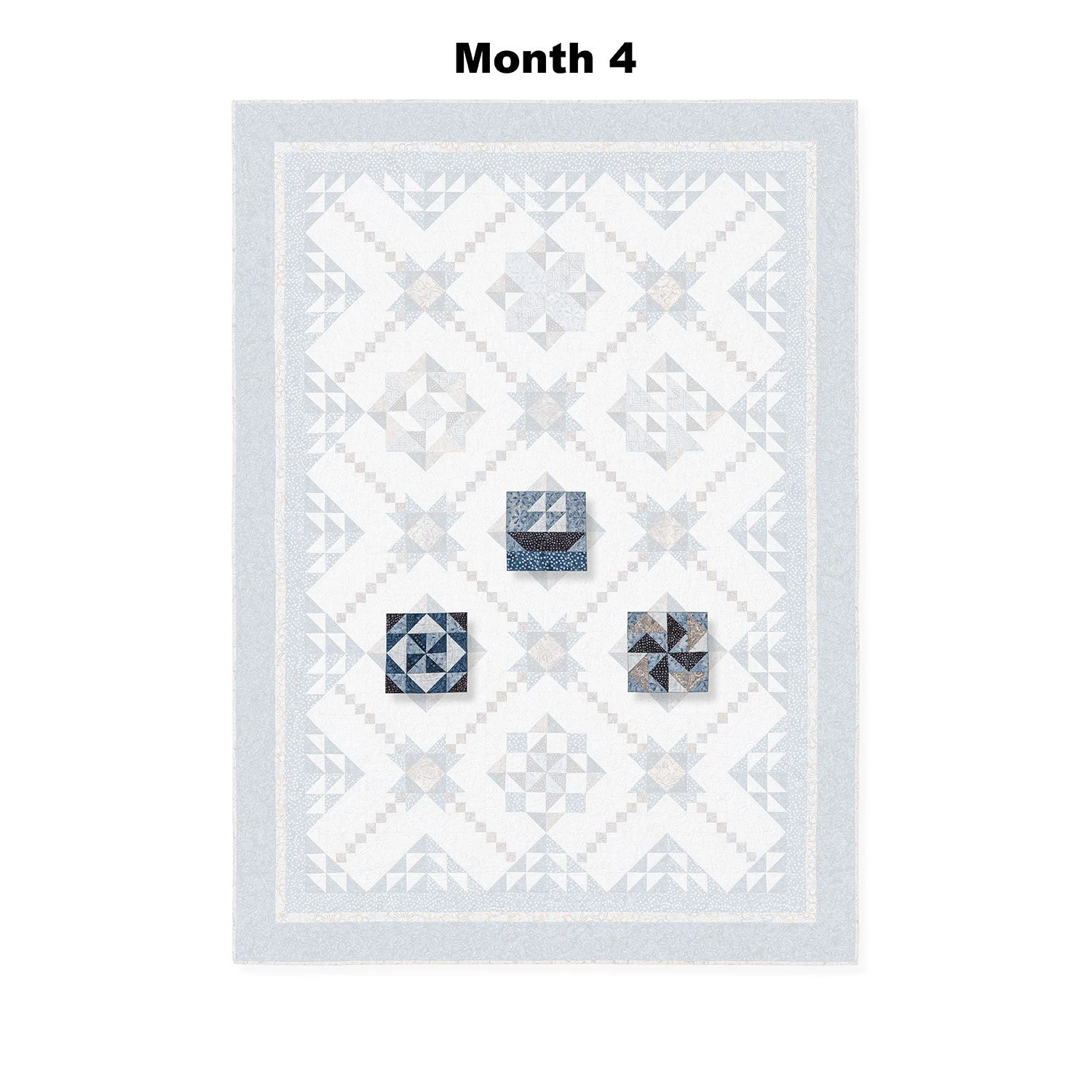 Designed by Timeless Treasures, each shipment of this 9-month-long Block of the Month program contains directions for a section of the pieced quilt and Tonga Lakeside fabrics by Timeless Treasures. Finishing instructions, border, and binding fabrics included in the last month.