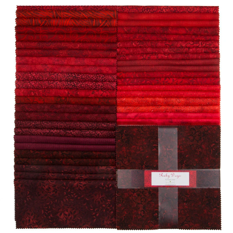 Become the quilter in the red dress with this 10” square pack! There’s nothing quite as dazzling as a slinky red dress, and these fabrics sure live up to that ideal! Bring out your next project’s inner femme fatale with dark reds, magentas, and passionate pinks.