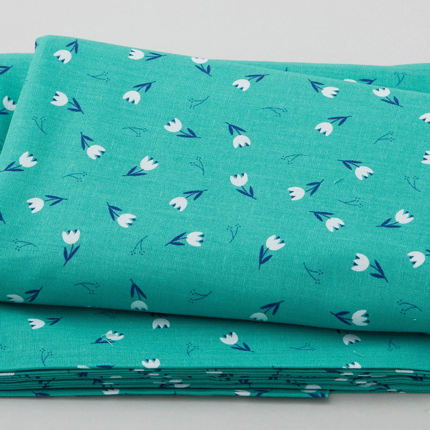 A 3-yard cut of white and blue tulips on a teal background. Pretty flowers and trees fill Windsong Meadows from Wilmington Prints. The blue, teal and gray prints come together to create a beautiful, cool color palette.